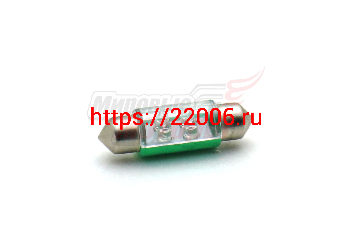 - Лампа 12 В T11х36, 4 светодиода LED 3 мм, двухцокольная, подсветки, зелёная в Ирбите недорого
