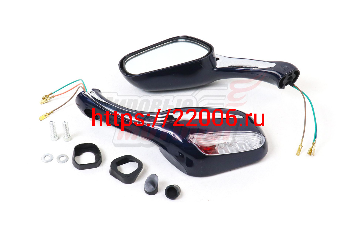 - Зеркала (070) пласт.Каплевидные объемные синие, поворотник (плоский разъем) в Ирбите недорого