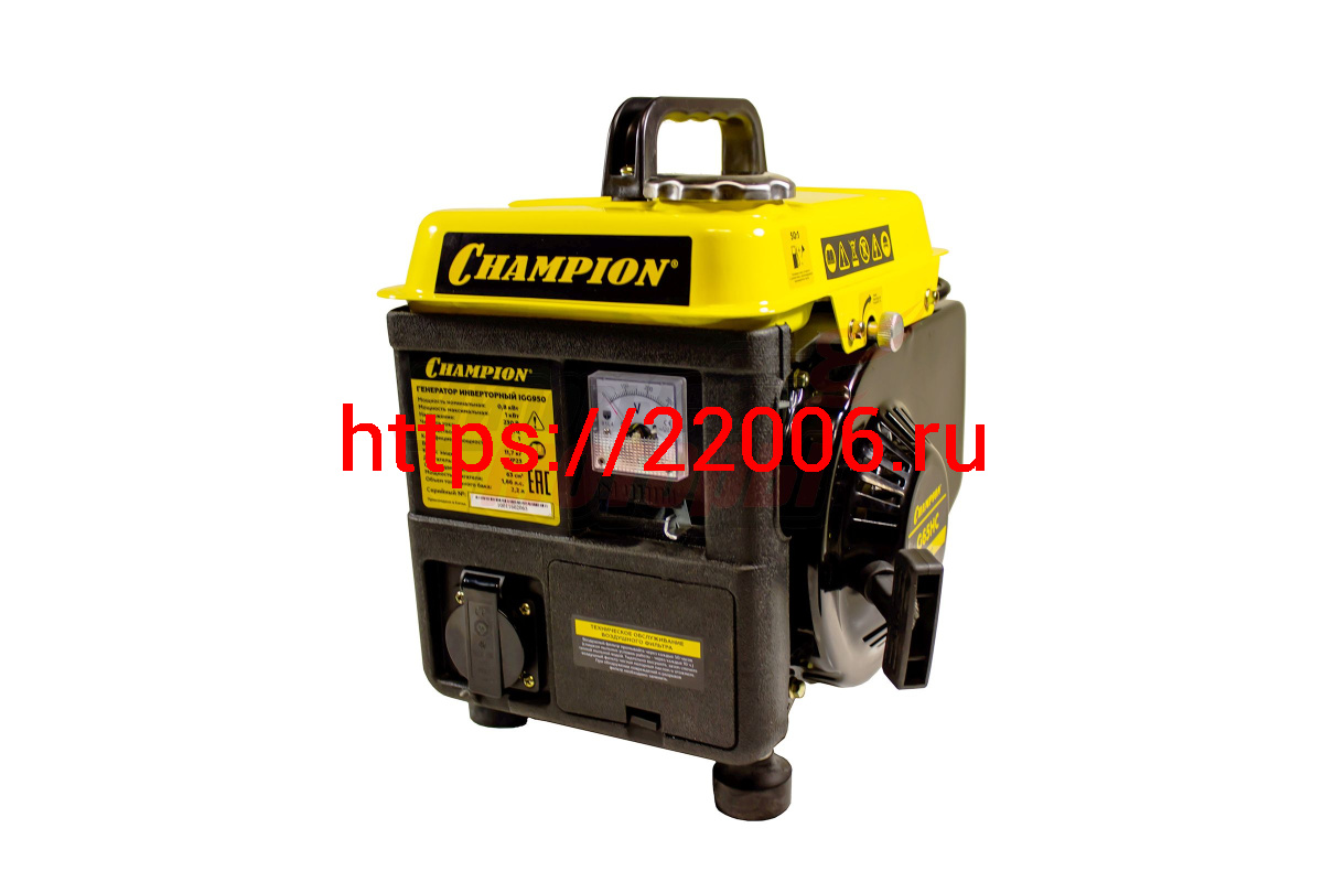 - Генератор бенз "CHAMPION" IGG950 инверторный (0,8/0,9кВт, 1,86лс, 2-хтактн. 2,2л 11,7кг 1.37л/ч 12V) в Ирбите недорого