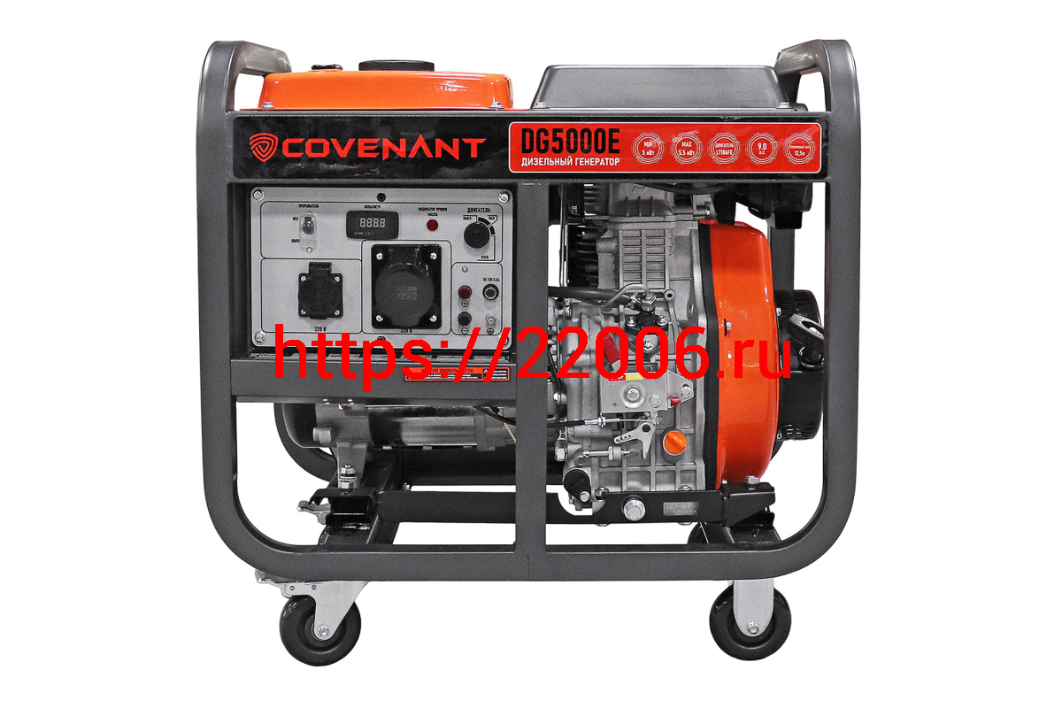 - Генератор диз. "COVENANT" DG5000E (5,0/5,5кВт, LT186FA, 418cc, бак 12,5л,115кг,электростартер,МЕДЬ) в Ирбите недорого