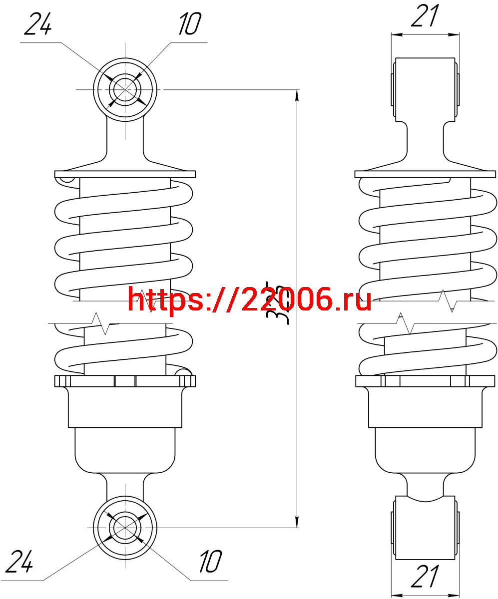- Амортизатор (L-325мм, D1-24мм,d1-10мм,Н1-21мм, D2-24мм,d2-10мм, Н2-21мм) перед. ZERO, SKELETON и аналоги в Ирбите недорого