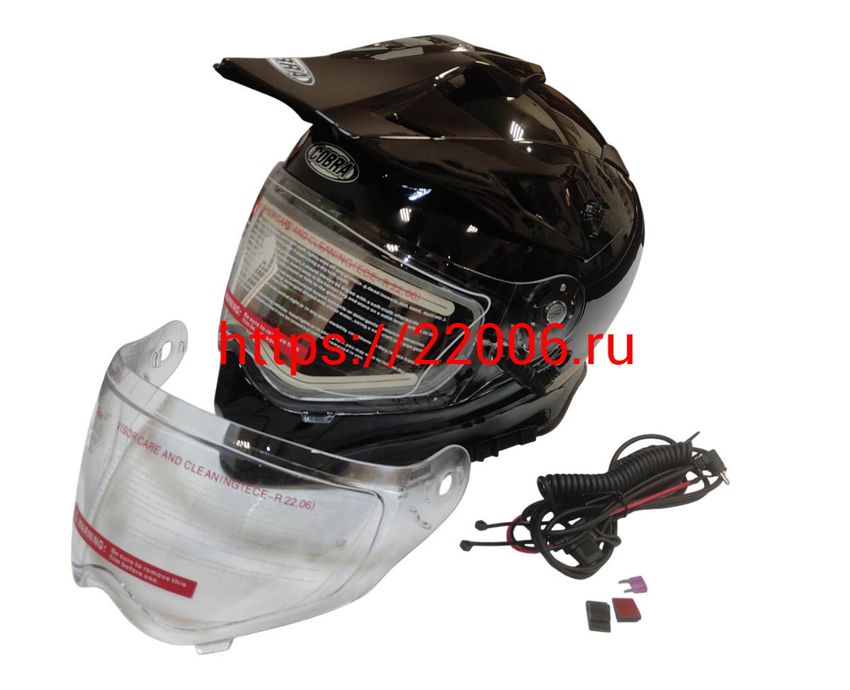 - Шлем кроссовый со стеклом (туринг) СНЕГОХОДНЫЙ COBRA EC H331, черный, с ПОДОГРЕВОМ ВИЗОРА, размер M в Ирбите недорого