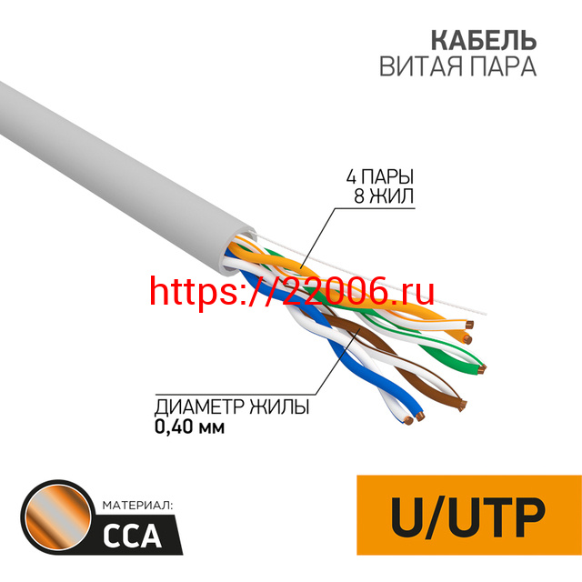 - Кабель витая пара PROconnect LIGHT UTP 4PR 26AWG, CCA, CAT5, PVC серый, бухта 305 м в Ирбите недорого